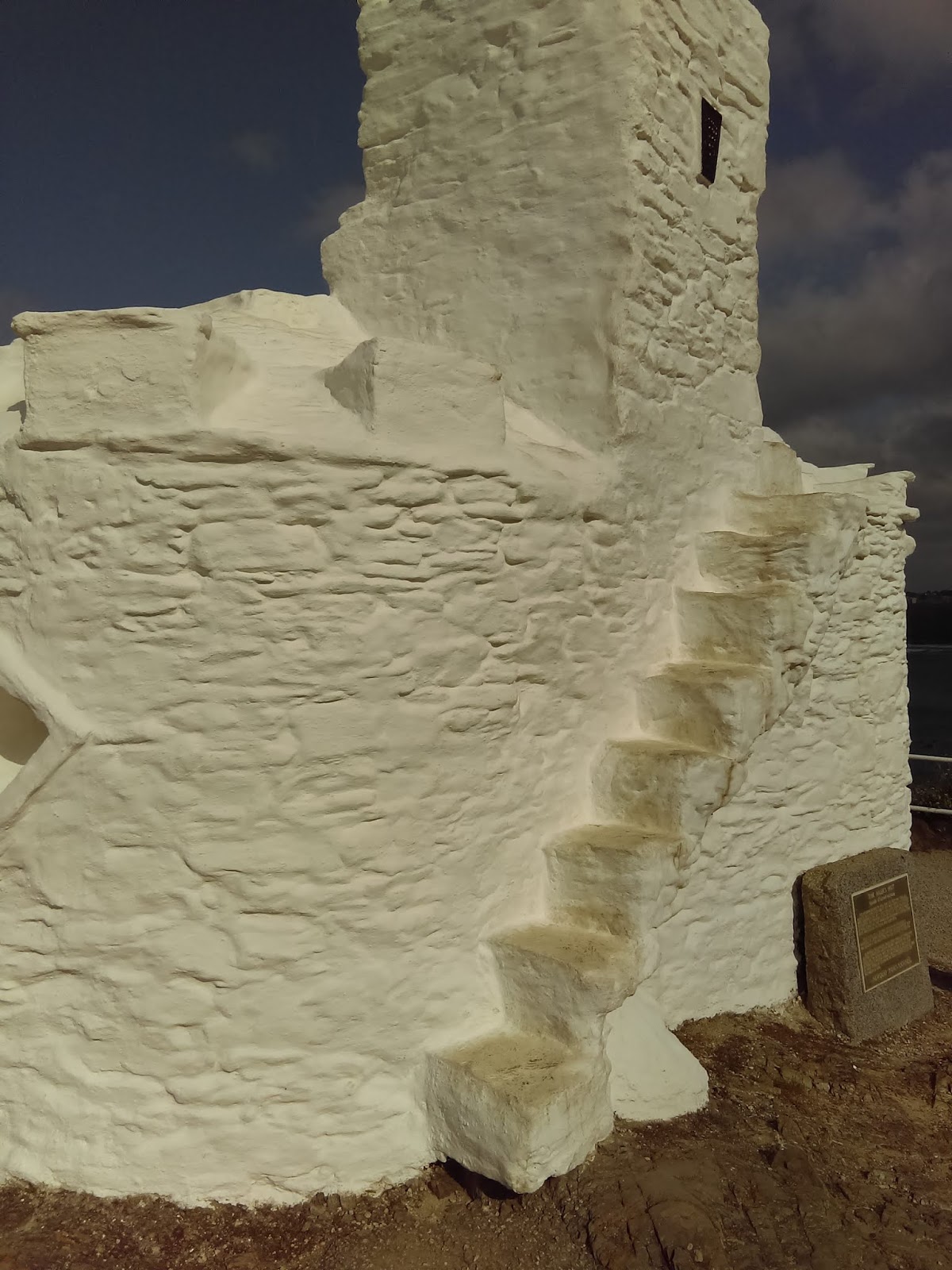 And I should note that I've since been corrected that here in Cornwall, a "school" of fish is considered little more than what would fill a large home aquarium...the term is "shoal." But pilchards were as instrumental to this town's development, at least as much as the various ores mined from the cliffs (primarily tin, but sometimes iron). In the early days, "huers" whose sole job was to spot the runs and alert the town were as much a part of the community as a farmer or butcher would have been, with huts built just for their often cold and fruitless job, even with the beautiful lighthouse-like positioning and scenery; they would often yell out "hubba, hubba"* or "heeva, heeva" to tell the town's people that "here they are" and then carefully direct the fishermens' boats with hand signals to encircle the shoal. At the end of a cold day, they would return to have a warm cake waiting, a simple one made of lard, flour, sugar and nutmeg, and appropriately called a huer or hevva cake and one making a touristy revival in some 8 the coastal towns (the picture on the left shows a closer view of the typical stair construction of the 14th-century structure, allowing easy access to the roof to signal both the town and fishermen).![]() |